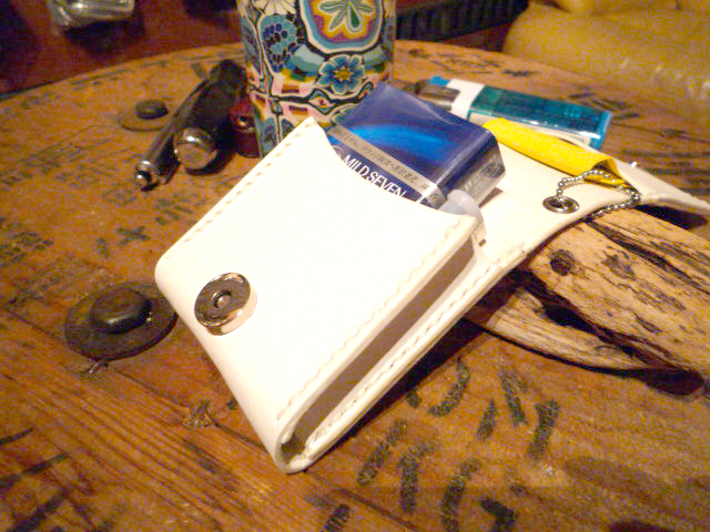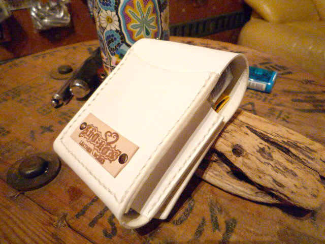 ホワイトのサドルレザーにアクセントとしてダイヤモンドパイソンとスタッズでかっこよさをひきだしたタバコケースをオーダーいただきました。